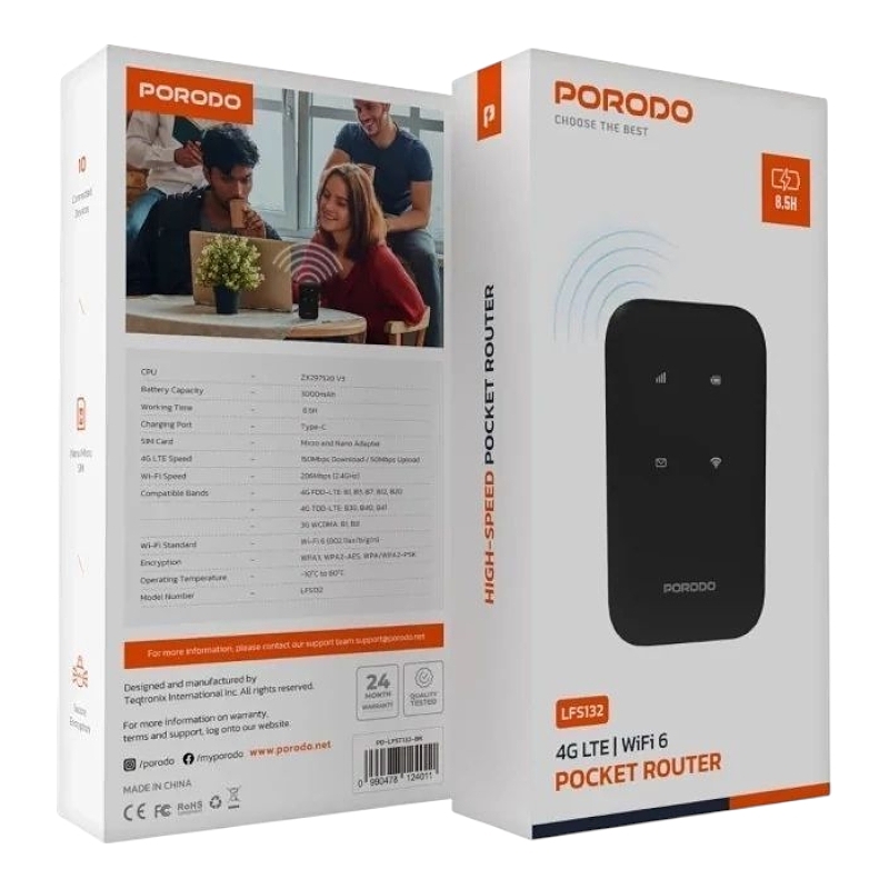 مودم جیبی پرودو PORODO POCKET ROUTER LFS132، همراه همیشگی شما برای اتصال به اینترنت پرسرعت در هر مکان است. با طراحی کمحجم و سبک، این مودم بهراحتی در جیب یا کیف جای میگیرد. با پشتیبانی از شبکههای 4G و سرعت اتصال بالا، تجربه اینترنتی بینظیری را فراهم میکند. اکنون خرید کنید و همیشه آنلاین بمانید!